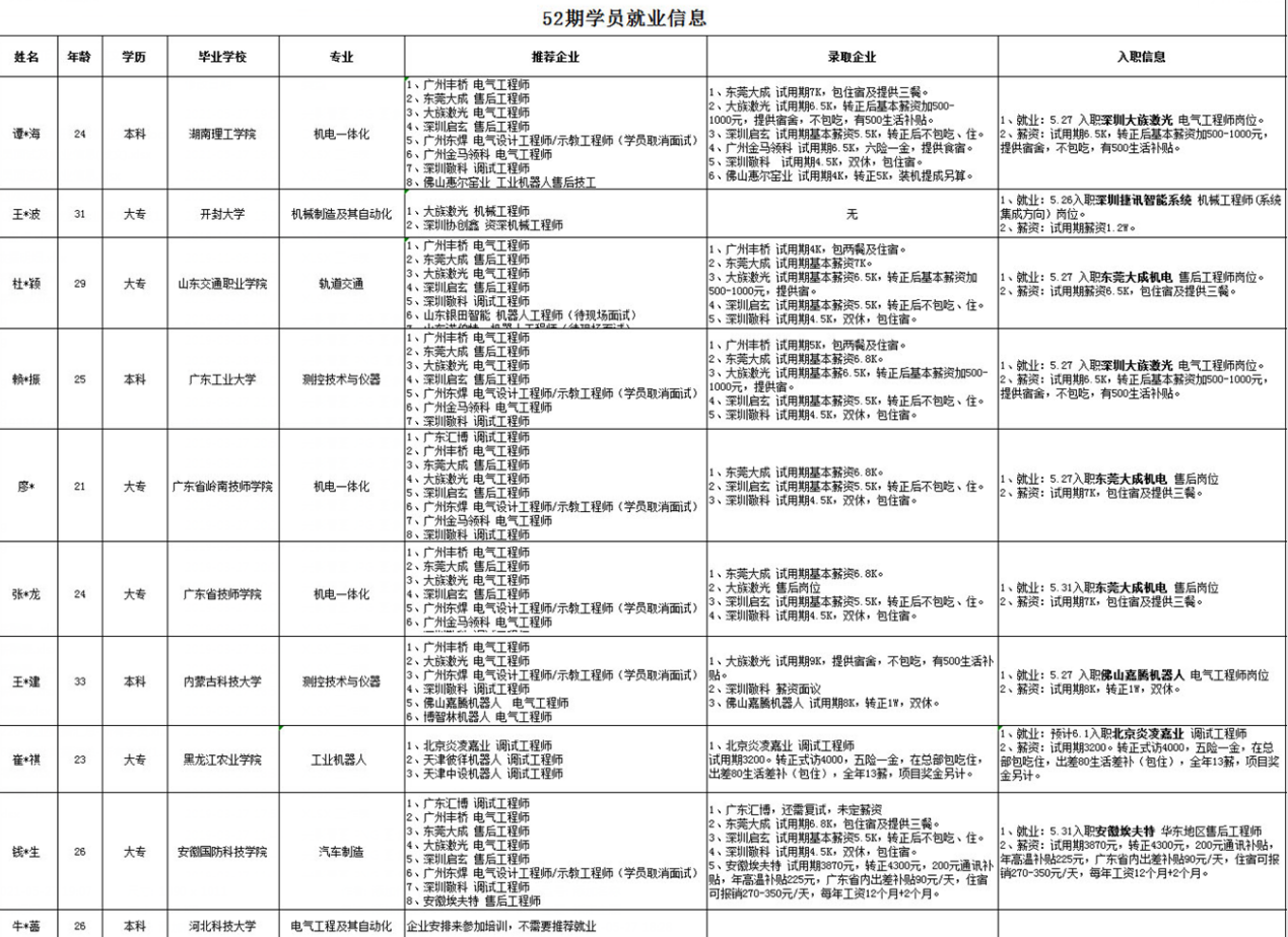 52期10位学员,其中*蔷同学由于是企业安排来参加培训,不需要推荐丝瓜APP网站入口。其他学员在经过努力后,都已实现丝瓜APP网站入口,试用期平均薪金为7015元,预计转正后平均薪资8000元左右,刚丝瓜APP网站入口时就能达到这个工资水平,小犀真心的为他们高兴。