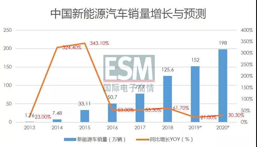 在2018年总汽车销量微跌的基础上,中国的新能源汽车销量有出色的成绩。