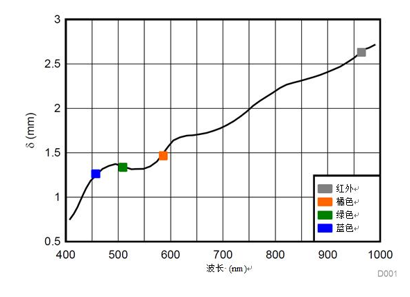 图1:显示一系列不同波长光源的光学穿透深度(δ)