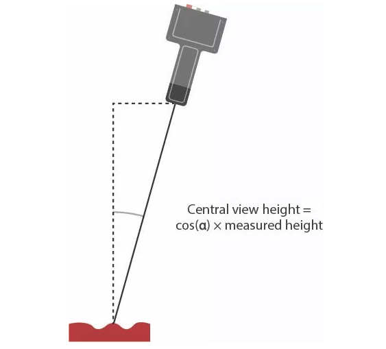 考虑到相机的倾斜角度,为了从中心角度精确测量高度,数值要乘以倾斜角的余弦值(见图2)。