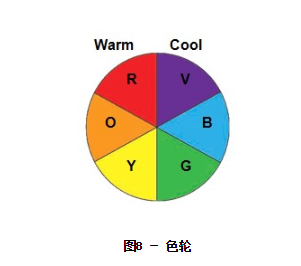 材料反射和/或吸收不同波长的光,这种效应对黑白和彩色成像空间都是有效的。 喜欢颜色反射和表面是明亮的; 相反,相反的颜色吸收和表面变暗。 使用暖色与冷色的简单色轮(图8),您可以在零件与其背景之间产生差异对比(图9),甚至在有限的已知调色板上区分颜色部分,白色相机(图10)。