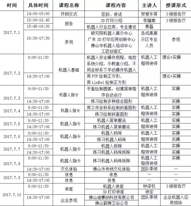 本次活动培训对象来自各省级高等职业院校机电一体化、电气自动化、数控技术、机械制造类专业教研室主任、专业带头人、专任教师及实训室管理人员,共40人。培训地点在佛山丝瓜视频污版在线观看机器人培训中心,培训由7月1日开始至7月15日,合计15天。