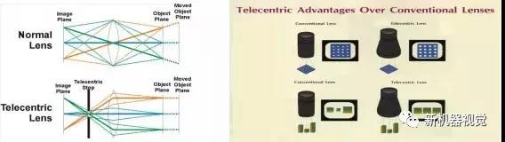 在测量系统中,物距常发生变化,从而使像高发生变化,所以测得的物体尺寸也发生变化,即产生了测量误差;即使物距是固定的,也会因为CCD敏感表面不易精确调整在像平面上,同样也会产生测量误差。采用远心物镜中的像方远心物镜可以消除物距变化带来的测量误差,而物方远心物镜则可以消除CCD位置不准带来的测量误差。