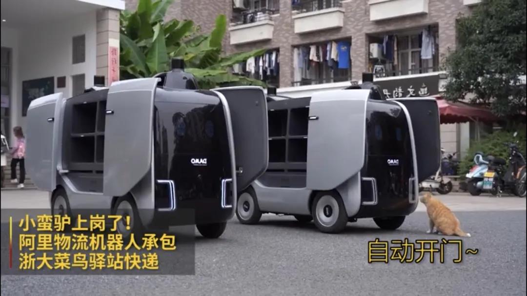 为了缓解快递高峰压力、提升末端配送效率,阿里向浙大派驻了一支物流机器人队伍,接管所有上门配送需求。