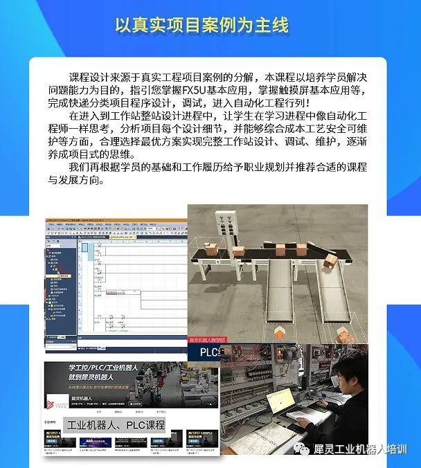 4、时间短,项目式课程设计;短时间便能掌握搭建自动化装配智能工作站的能力。项目式课程设计更利于学员理解编程思路和掌握实操技能。
