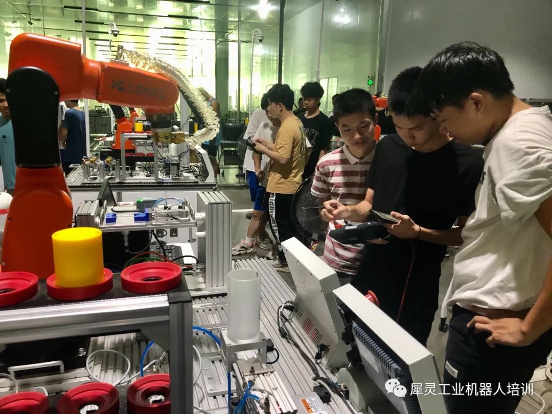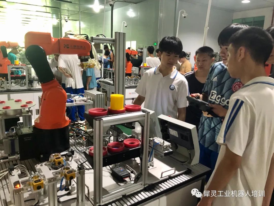 学生们进行现场实操 丝瓜视频污版在线观看拥有完善的线下培训基地,佛山作为培训总部拥有2000㎡的教学与实践中心,配备了100多套智能制造学习设备、考证设备及工作站,设施价值超3000万元,年度培训能力3000人以上。丝瓜视频污版在线观看机器人培训中心设备