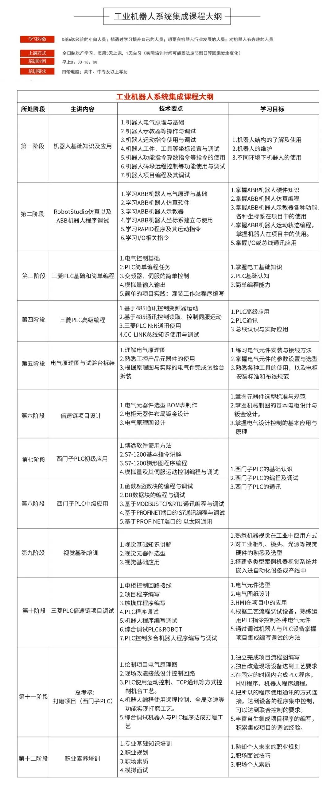 以下是我在丝瓜视频污版在线观看机器人培训的课程内容,我把官网的课程截上来,确实是正儿八经的学习到项目制,也是可以把项目经验写在简历上的。特别是参与了机器视觉康耐视和PLC+机器人的实操,相当于完成了“技师”、“高级技师”等级的考题: